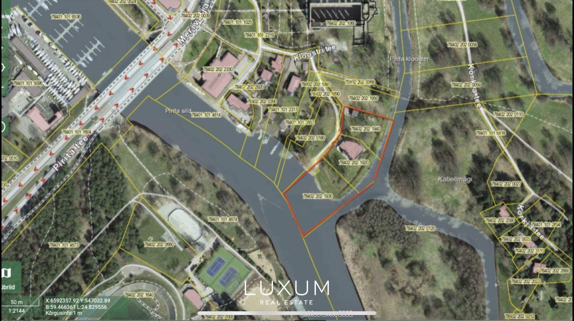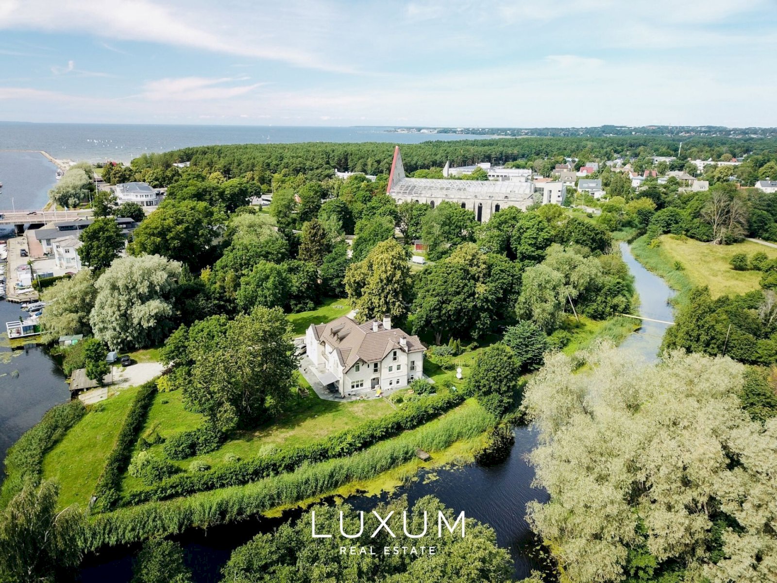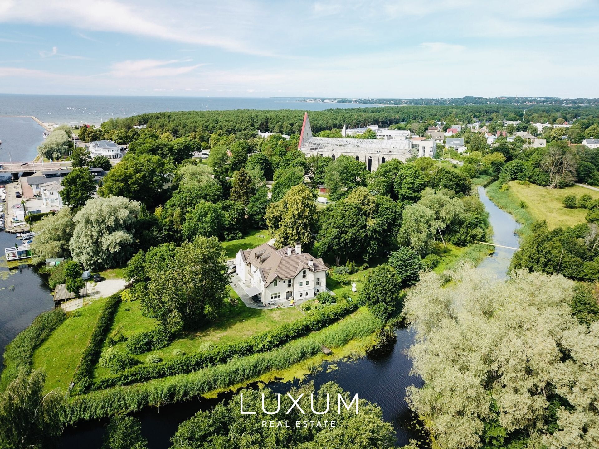 On the banks of the Pirita River, embraced by ancient forest and framed by views of the historic Pirita Monastery, stands an exclusive Art Nouveau villa designed by renowned architect Allan Strus. Completed in 2000, this distinguished residence is set on an exceptionally private 4174,5 m² estate composed of three cadastral units, extending to the midpoint of the river itself.