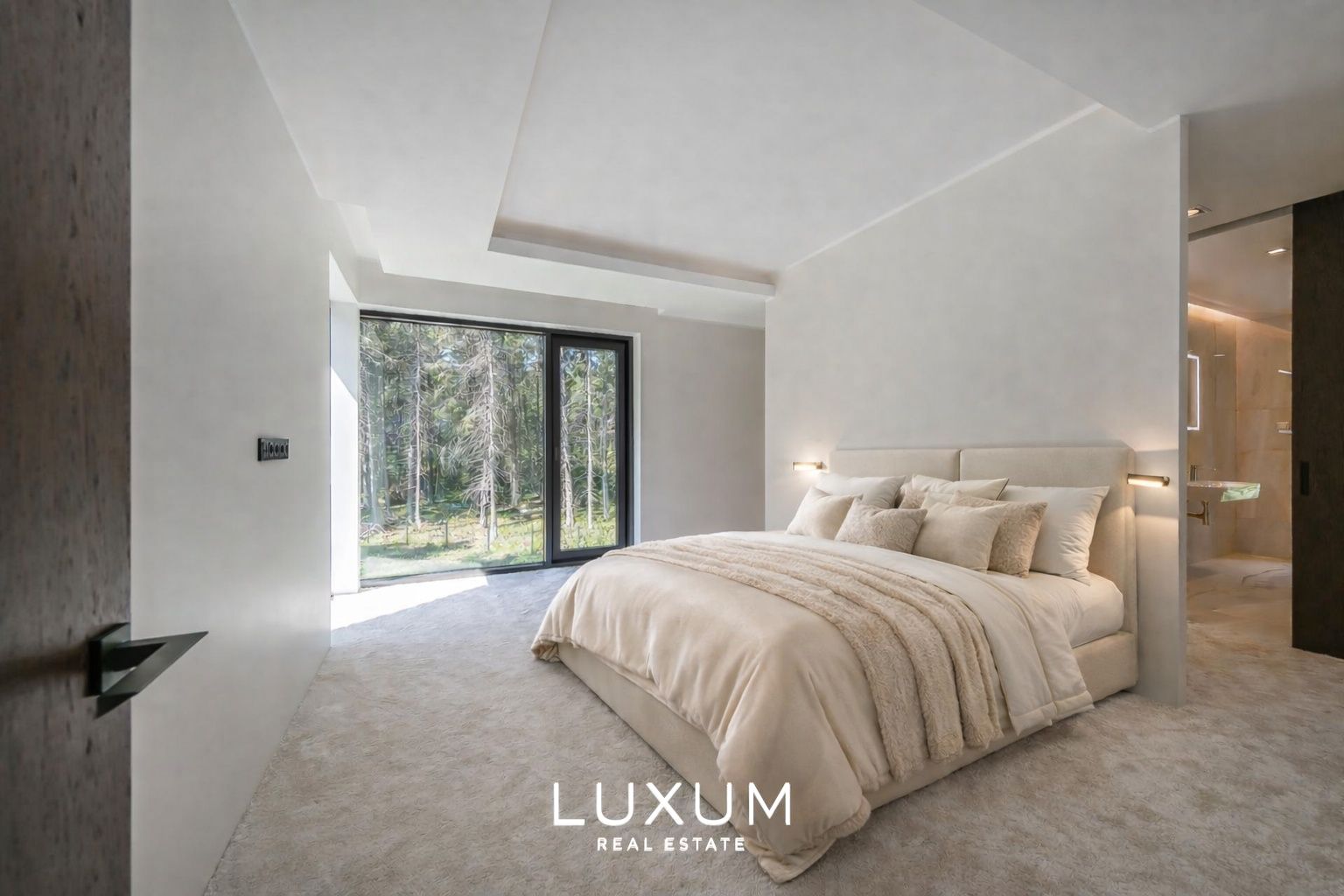 The master bedroom is particularly impressive, offering floor-to-ceiling windows with views of the surrounding forest, a spacious separate dressing room, and a luxurious en-suite shower room. All sanitary ware throughout the house is from Villeroy & Boch, ensuring a consistently high standard of quality and design. The total area of the second floor is 136.1 m².