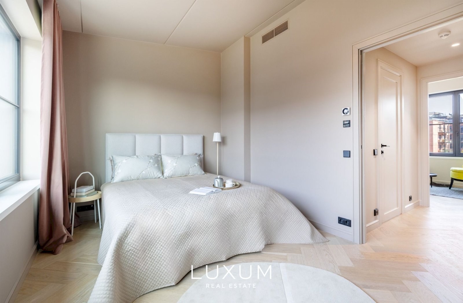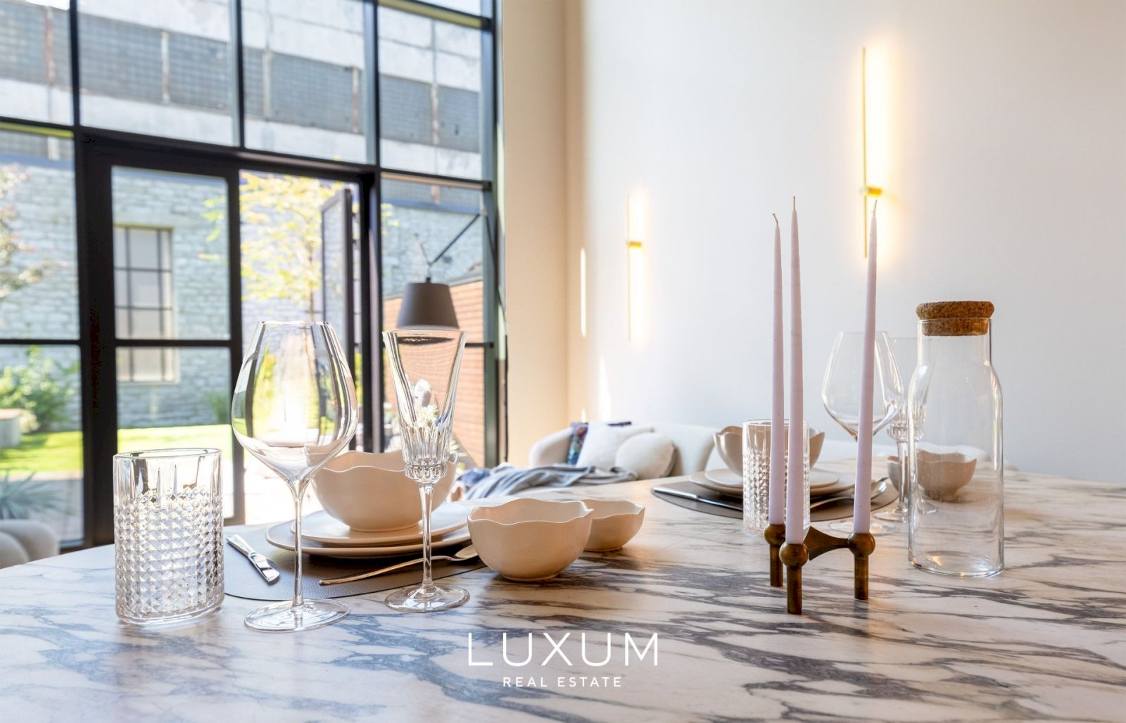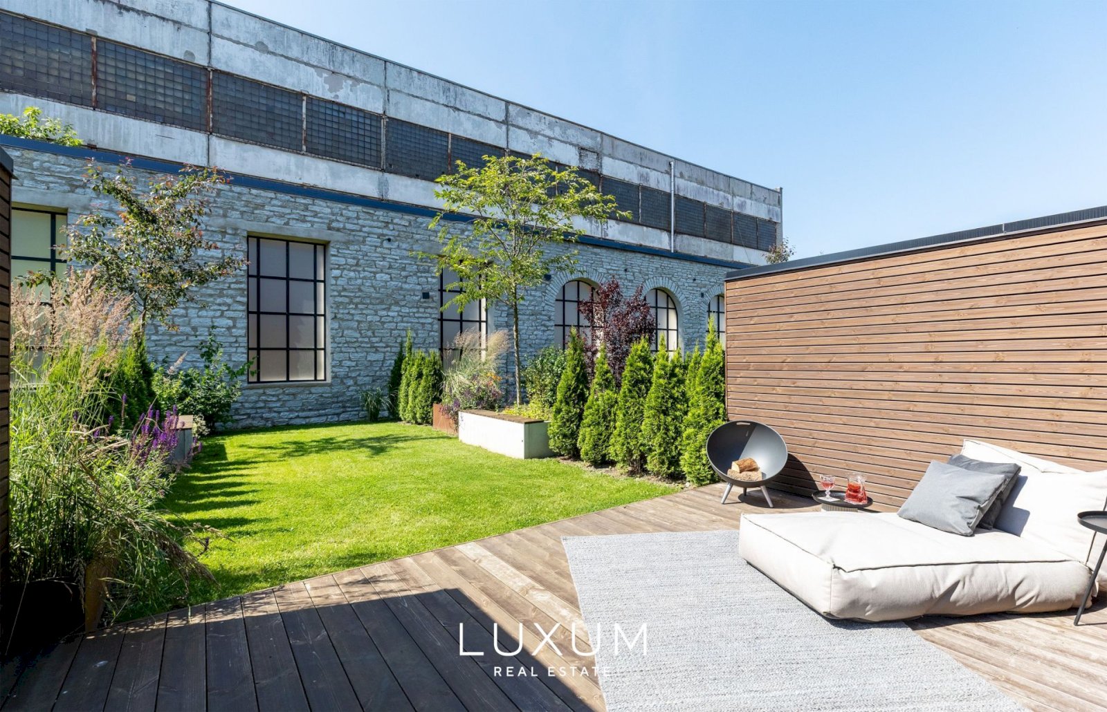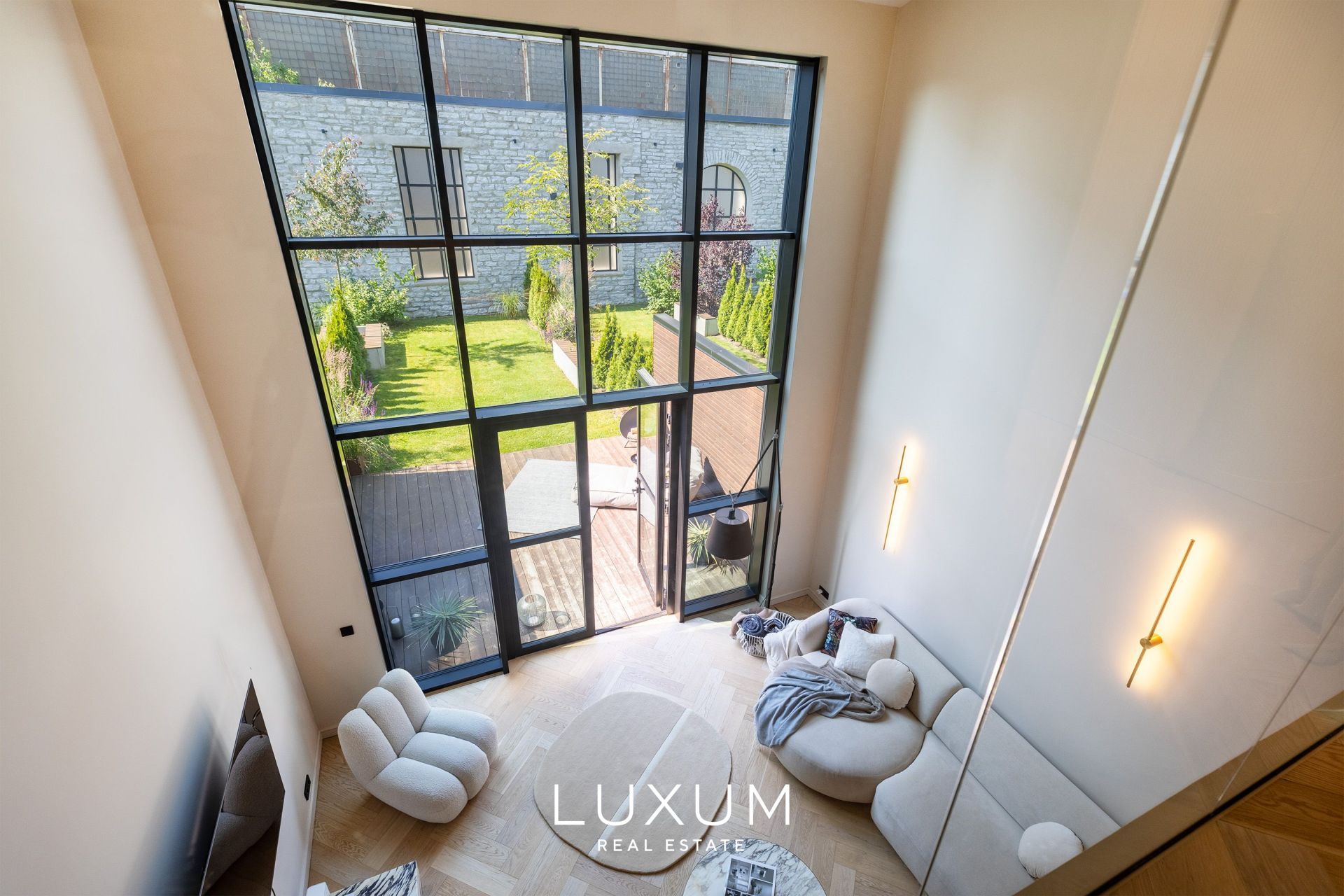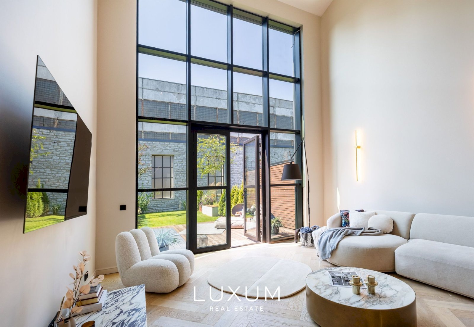 The building and apartment feature unique historical character and industrial architecture – limestone walls, ceilings up to 6.3 m high, and 5 m-tall grid windows form a truly timeless combination.