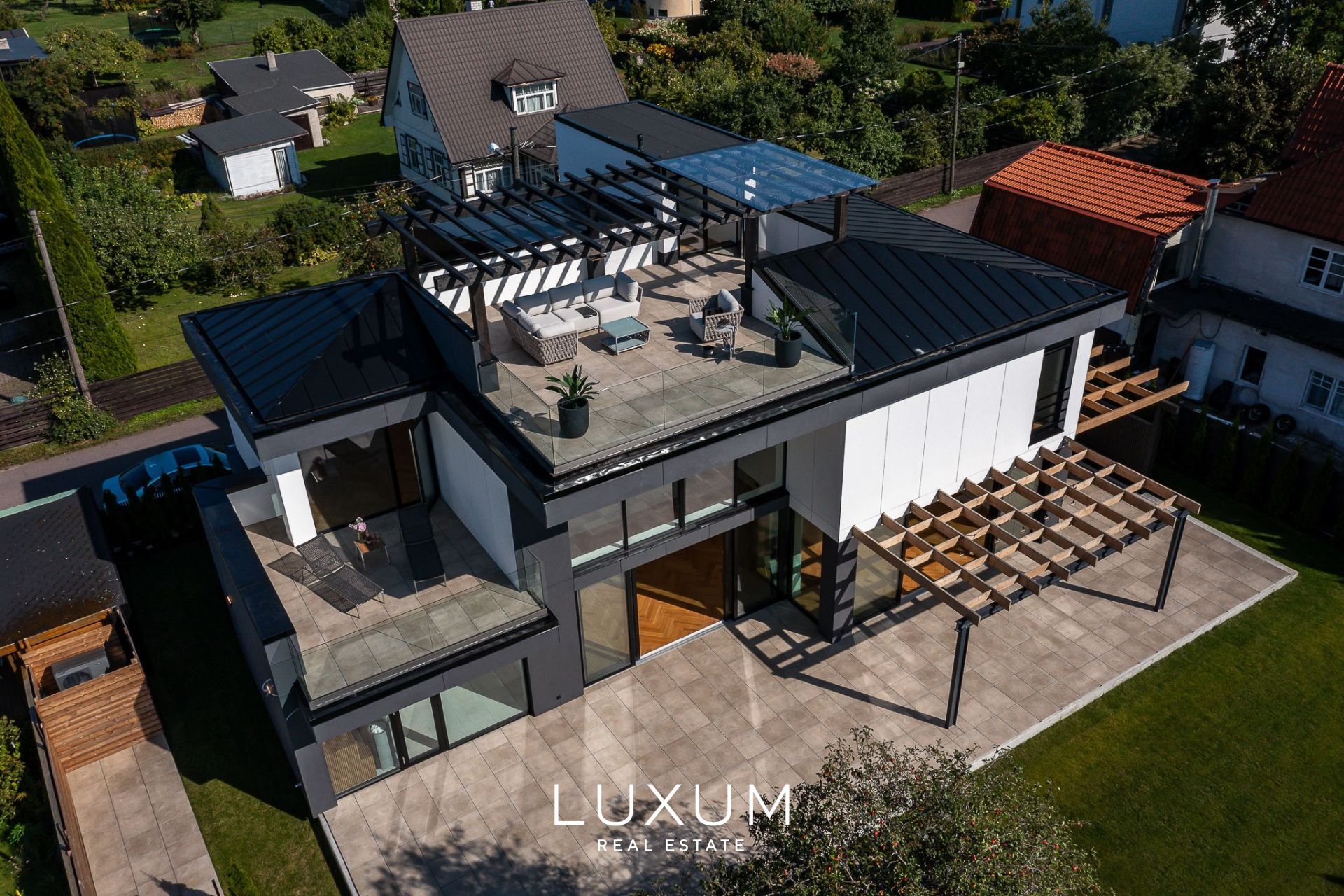 The villa is ideal for a family that values both personal space for each family member and cherishes quality time spent together with loved ones. It offers a tranquil and green living environment, just a 15-minute drive from the city center.