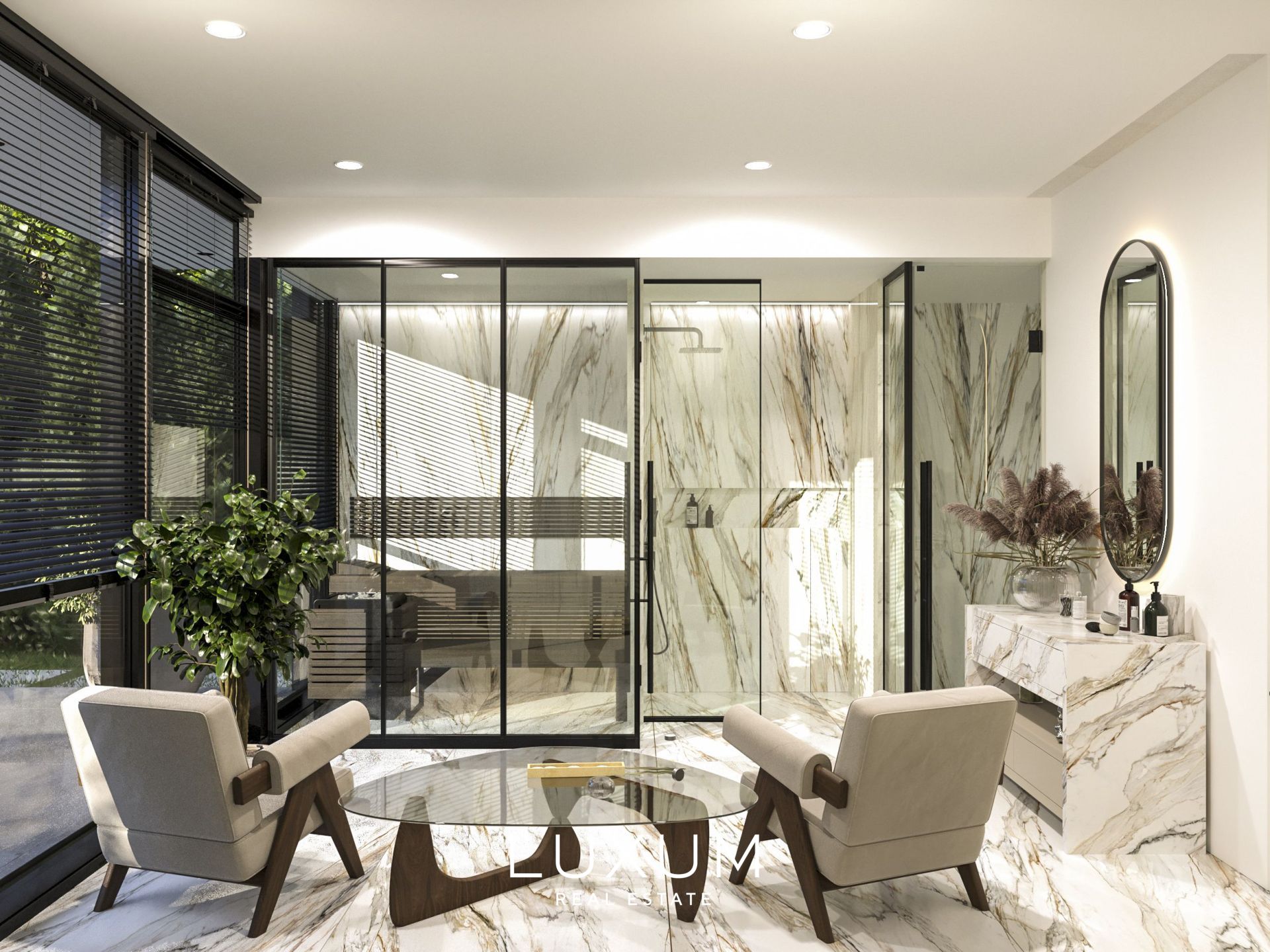 This thoughtfully designed villa is characterized by spaciousness and airiness, while ensuring complete privacy for its residents.