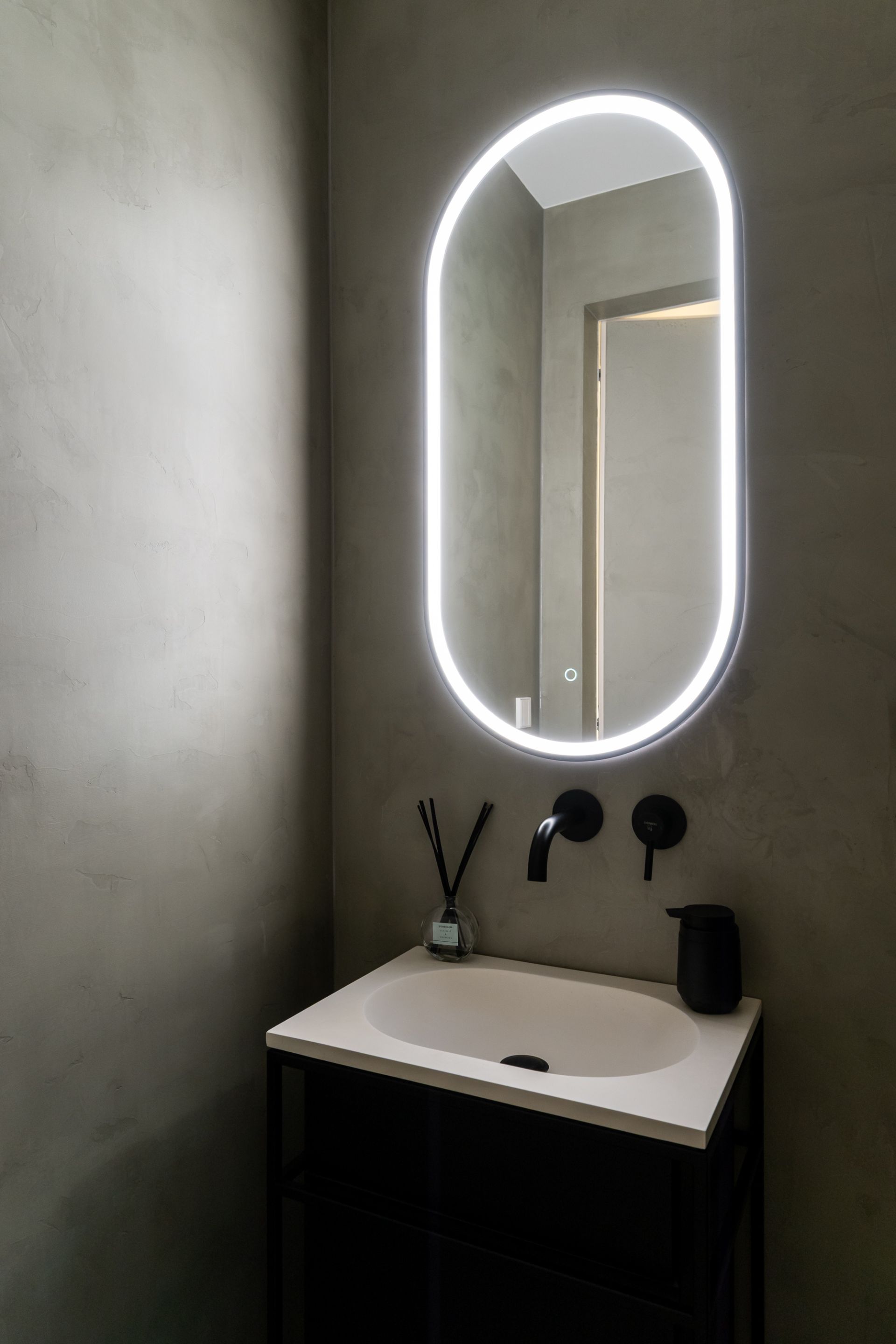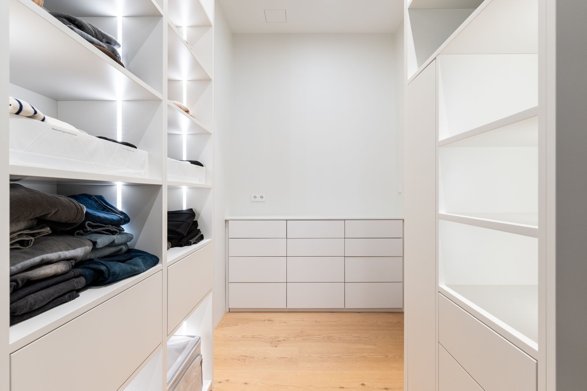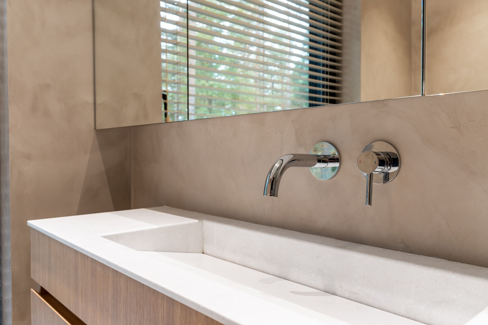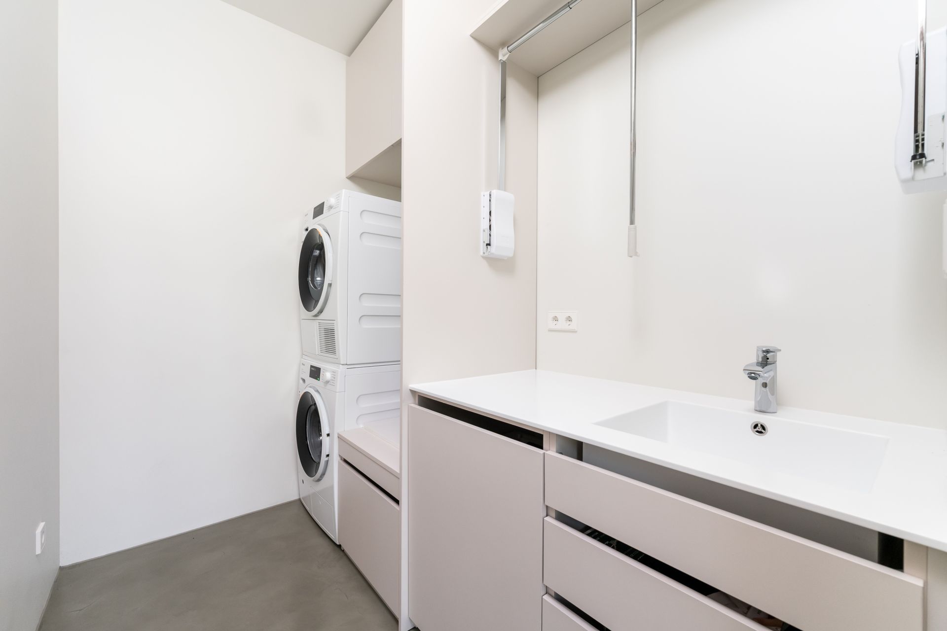 The stylish, high-quality kitchen is custom-made by Schmidt, equipped with Miele appliances, while the BORA system ensures an efficient cooking experience. The worktop and fireplace wall are finished with Dekton Sirius stone, which comes with a 25-year warranty. The kitchen’s design and materials create an elegant, timeless, and practical whole.