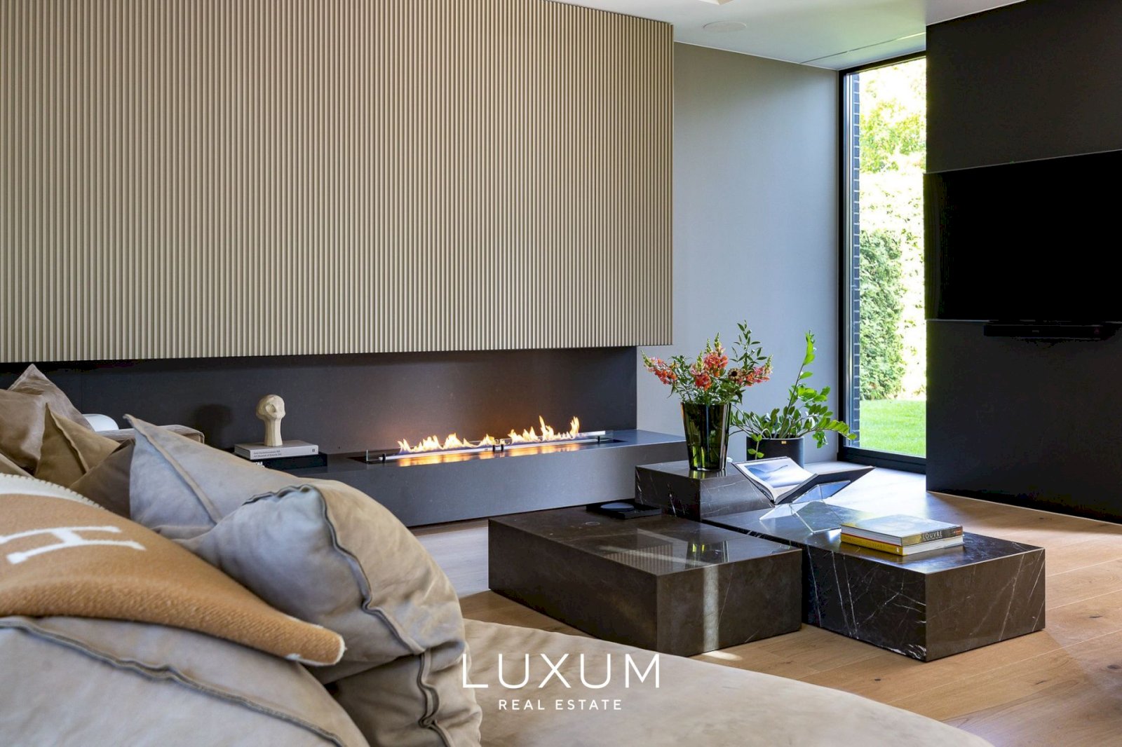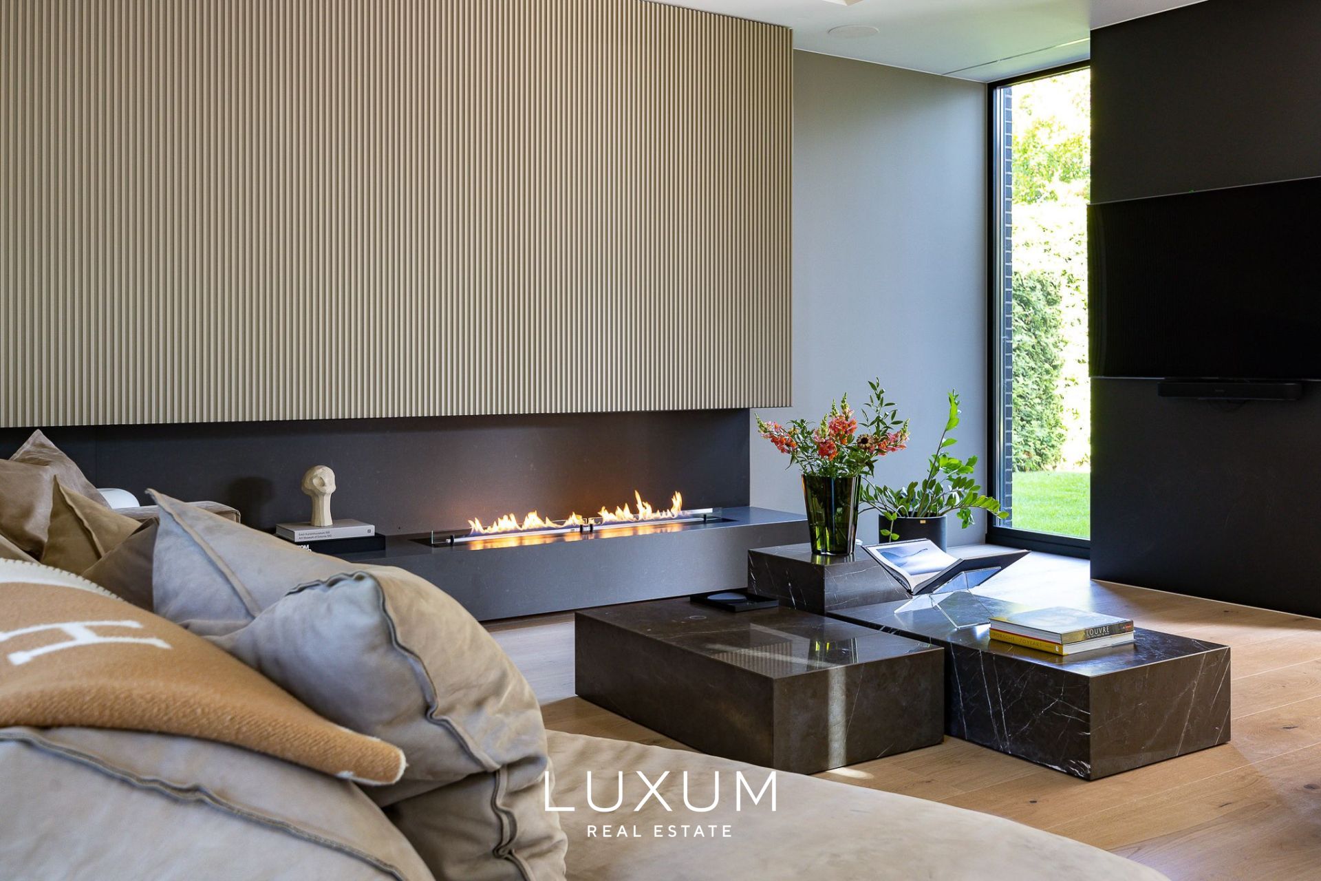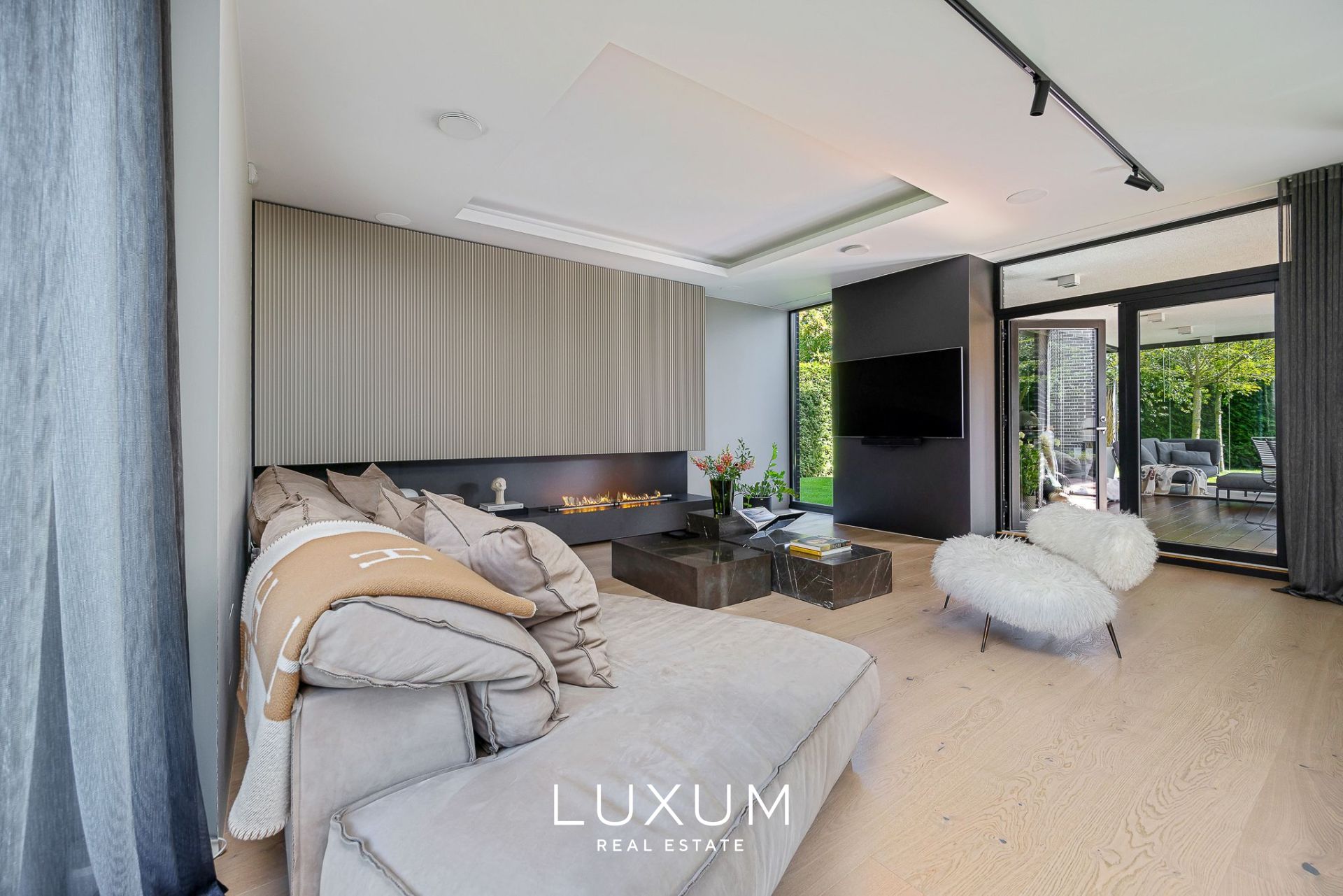 - Spacious living room with a designer fireplace and access to the glazed terrace