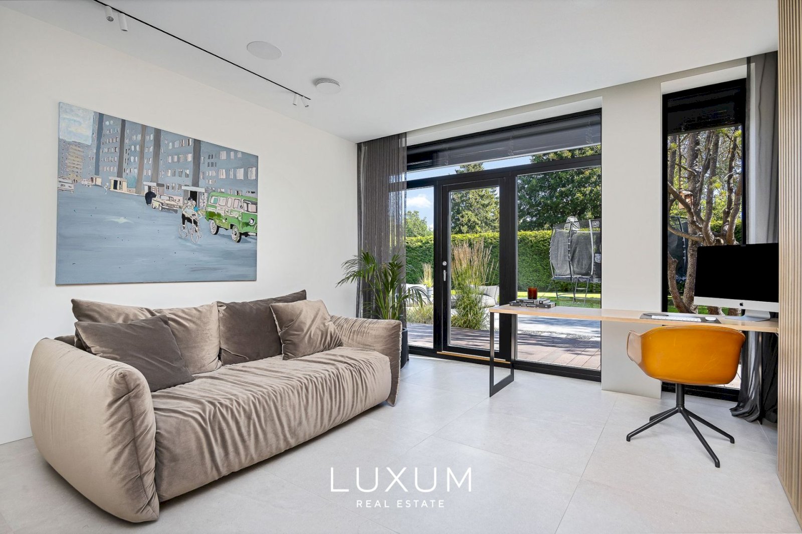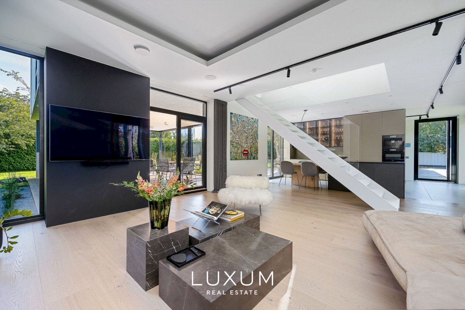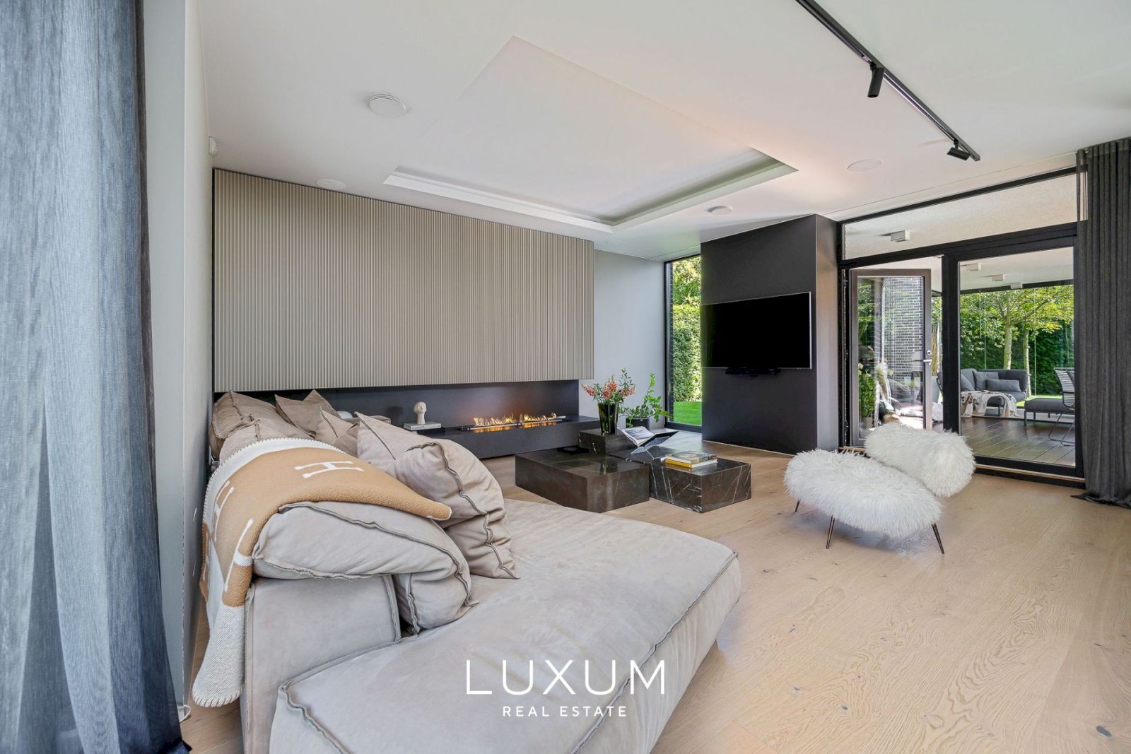 - Spacious living room with a designer fireplace and access to the glazed terrace