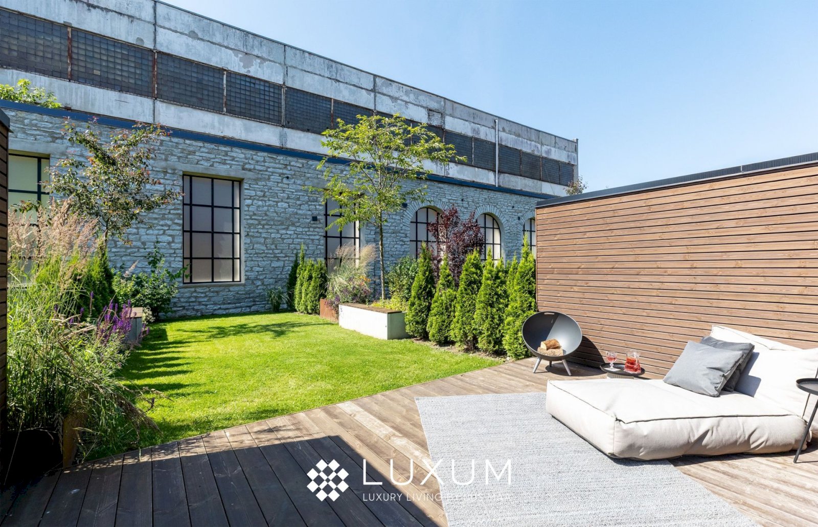 The building and apartment feature unique historical character and industrial architecture – limestone walls, ceilings up to 6.3 m high, and 5 m-tall grid windows form a truly timeless combination.