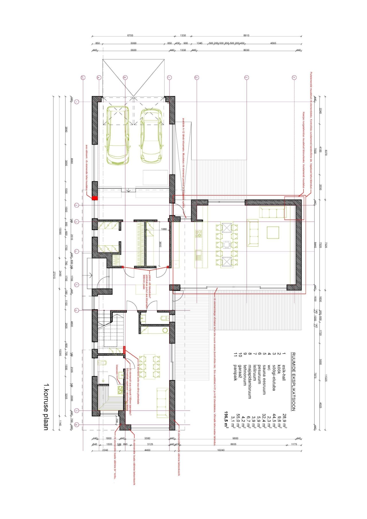 Soojas garaazis (42m²) on palju uumi kahele autole.  Tehnoseadmete ruum paikneb sissepääsuga maja küljest.