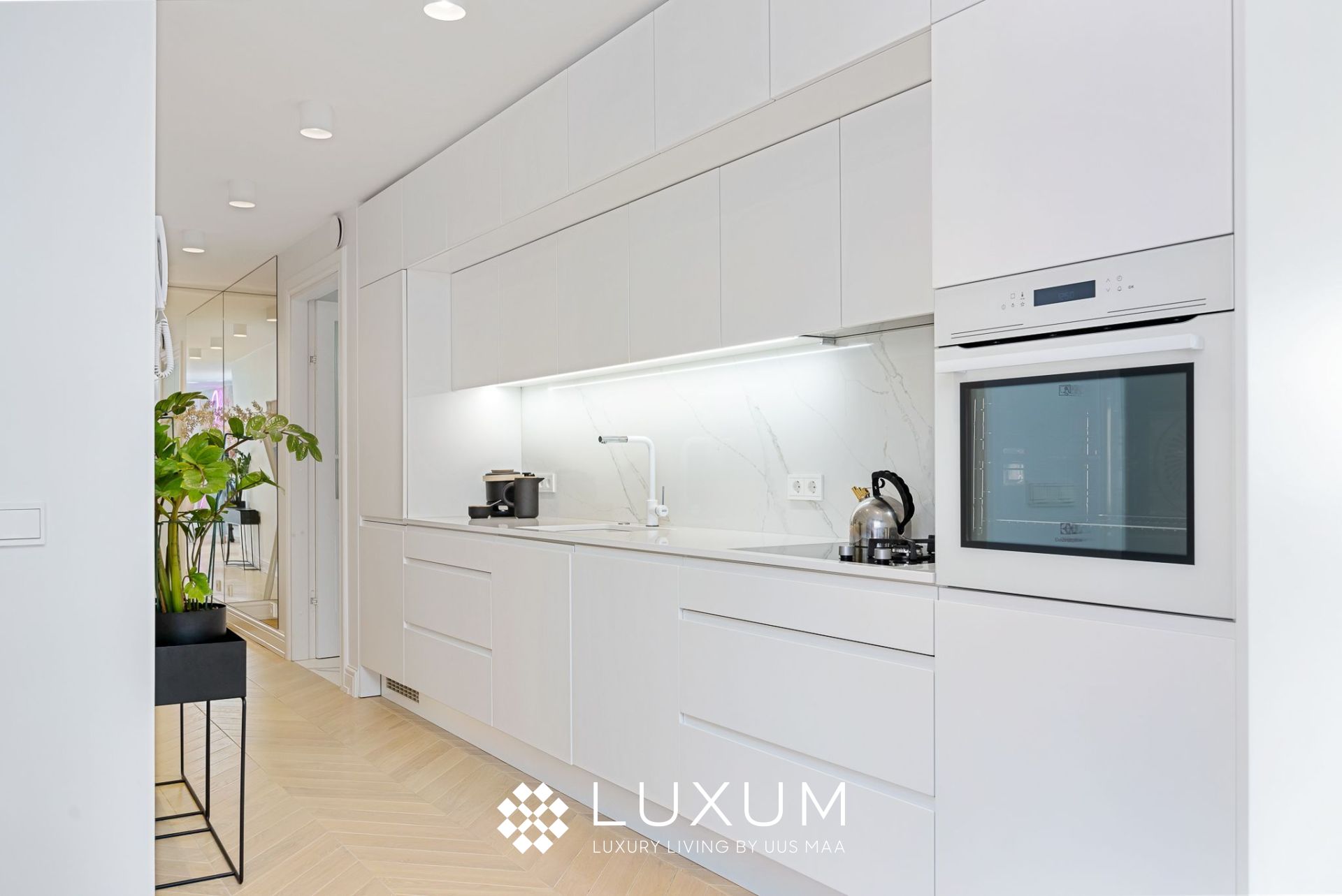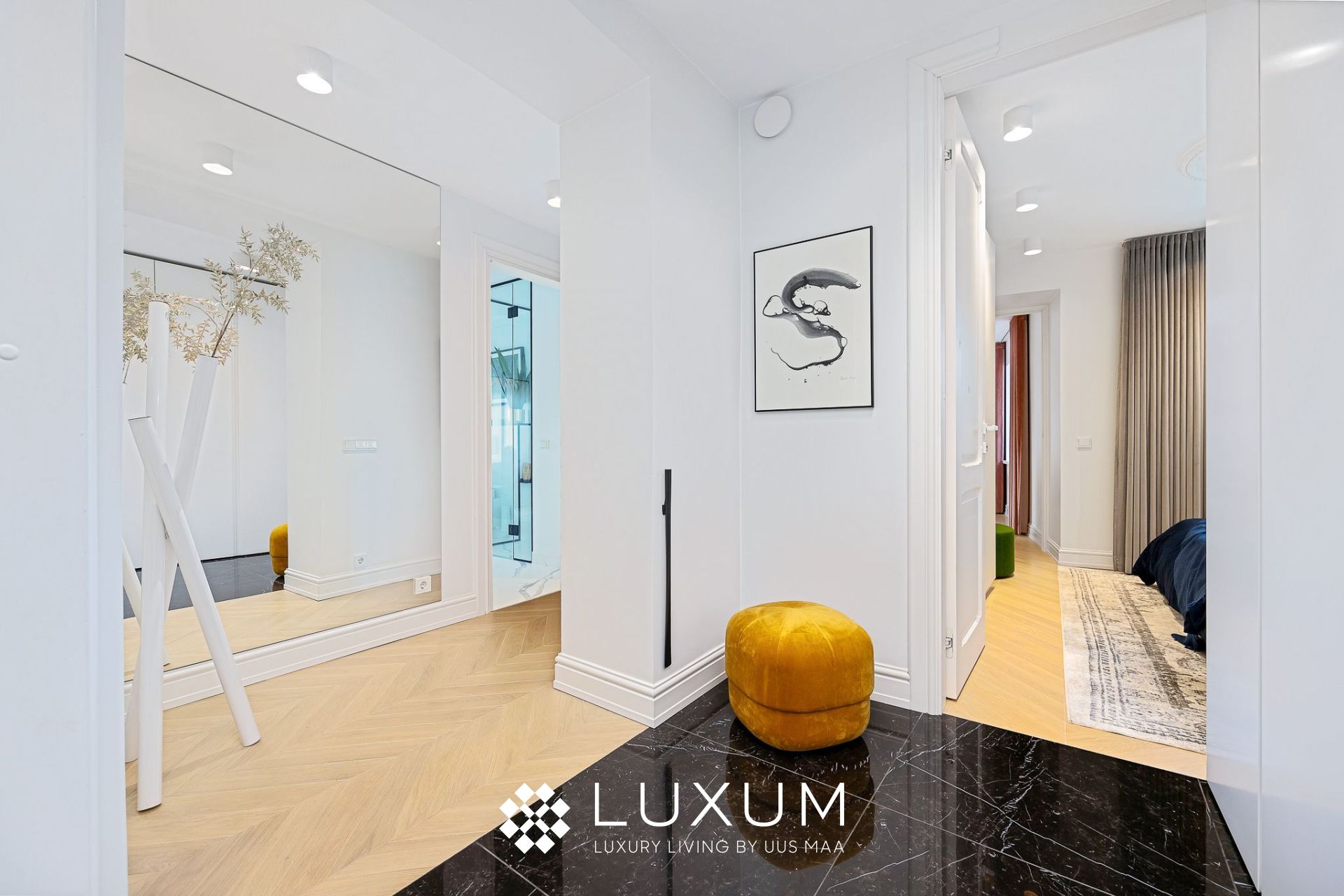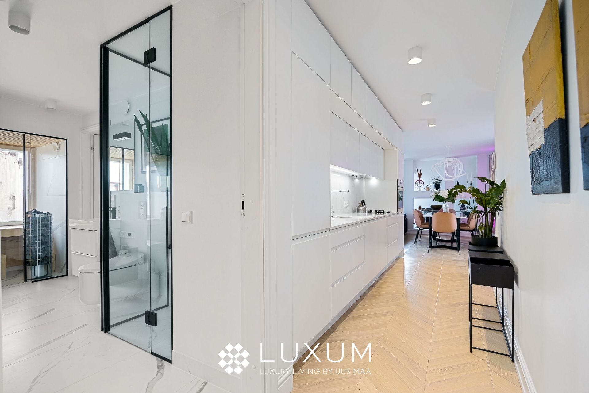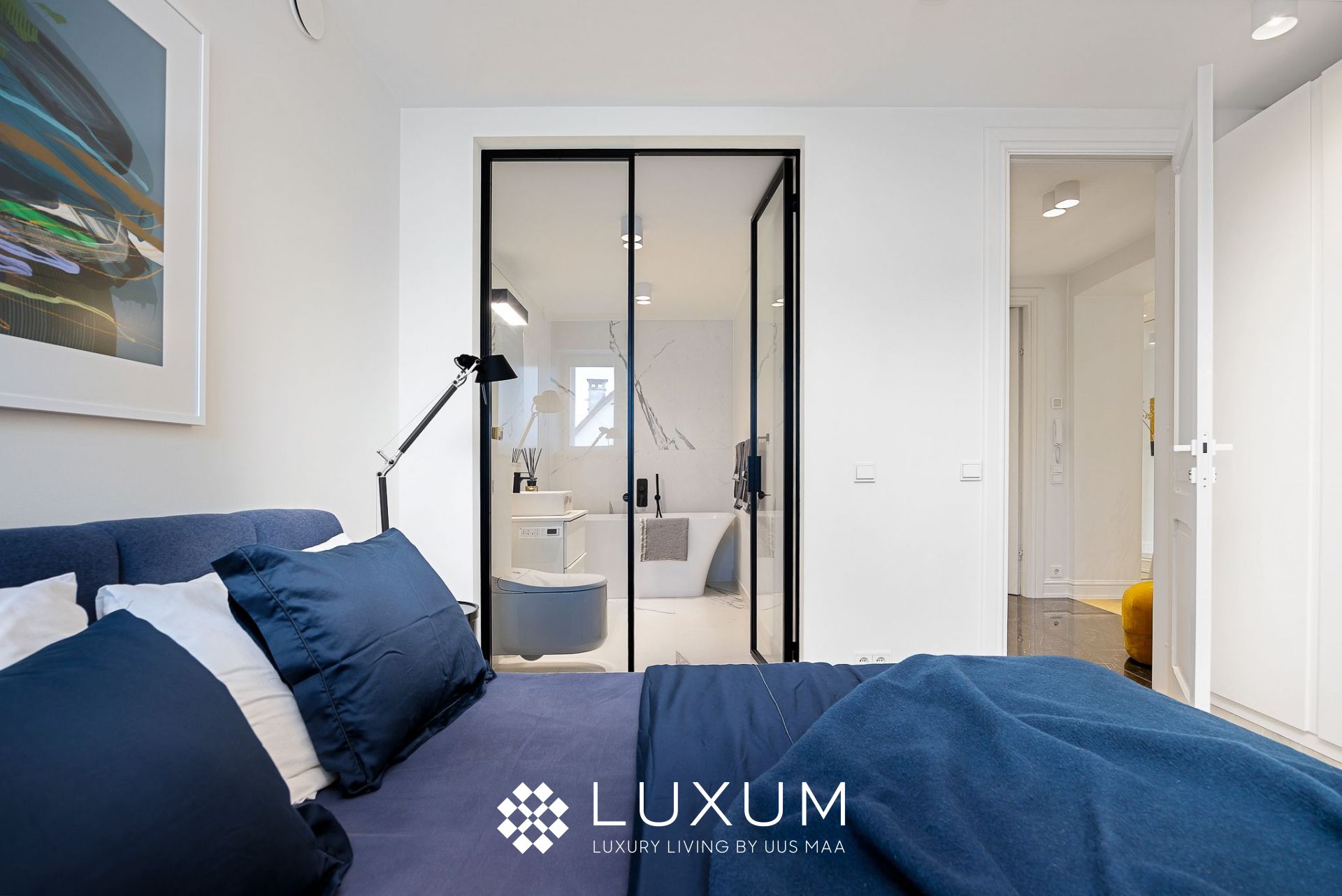 Hoolikalt valitud materjalid ja läbimõeldud valguslahendused toovad esile korteri unikaalsed arhitektuurilised detailid, muutes kodu hubaseks ja erakordselt stiilseks.