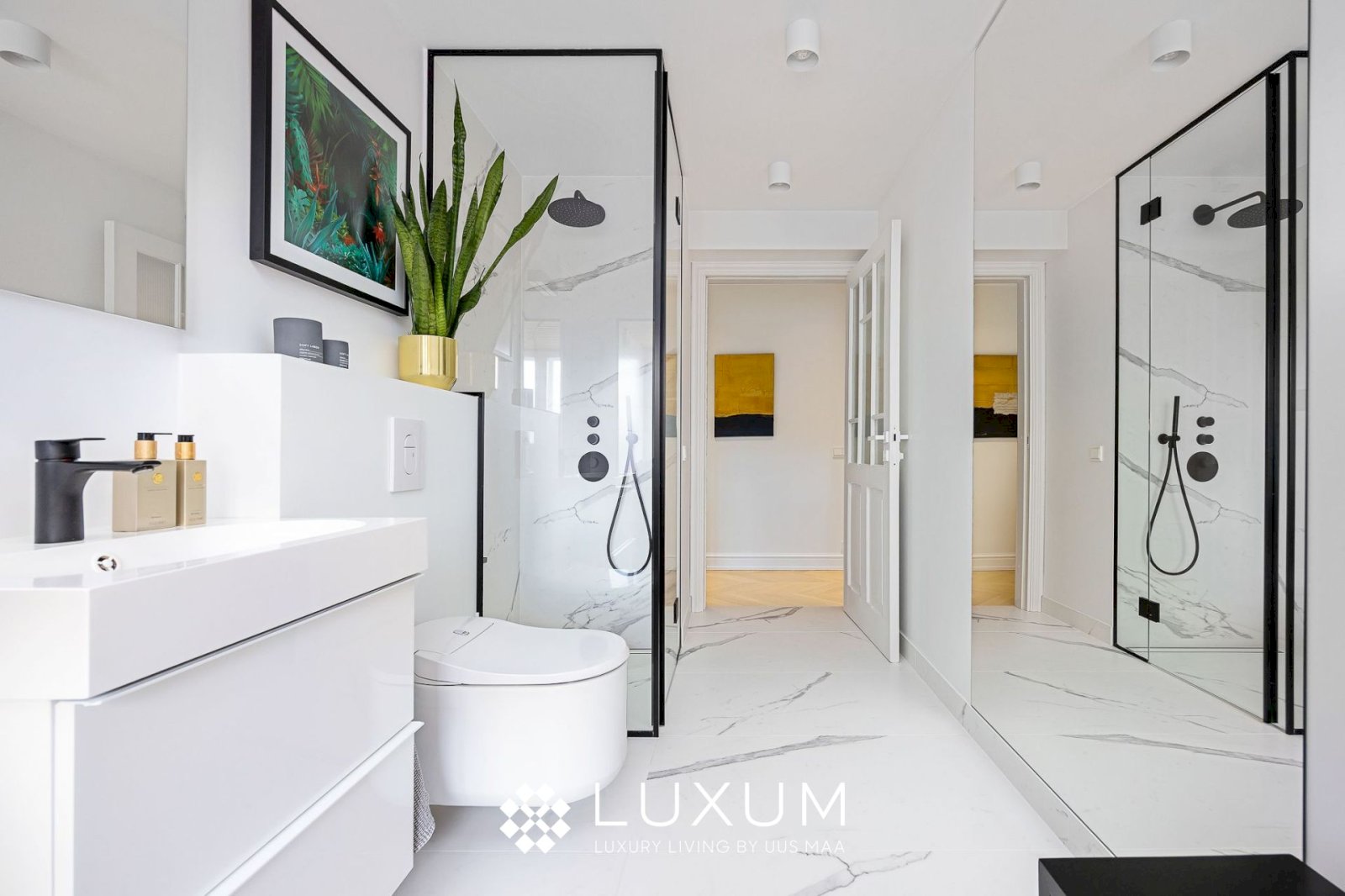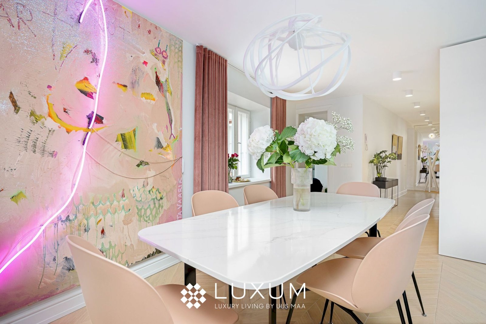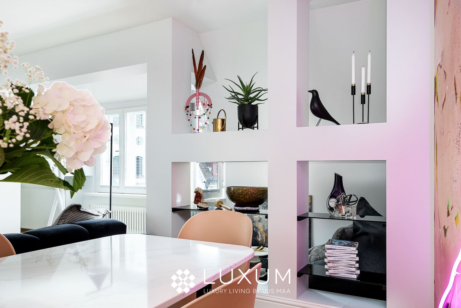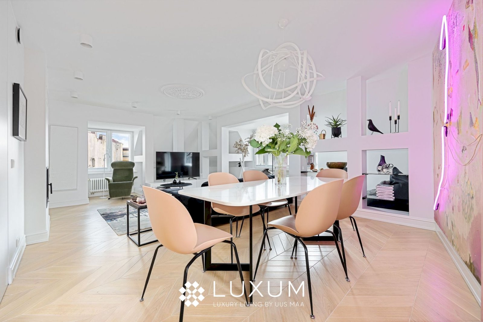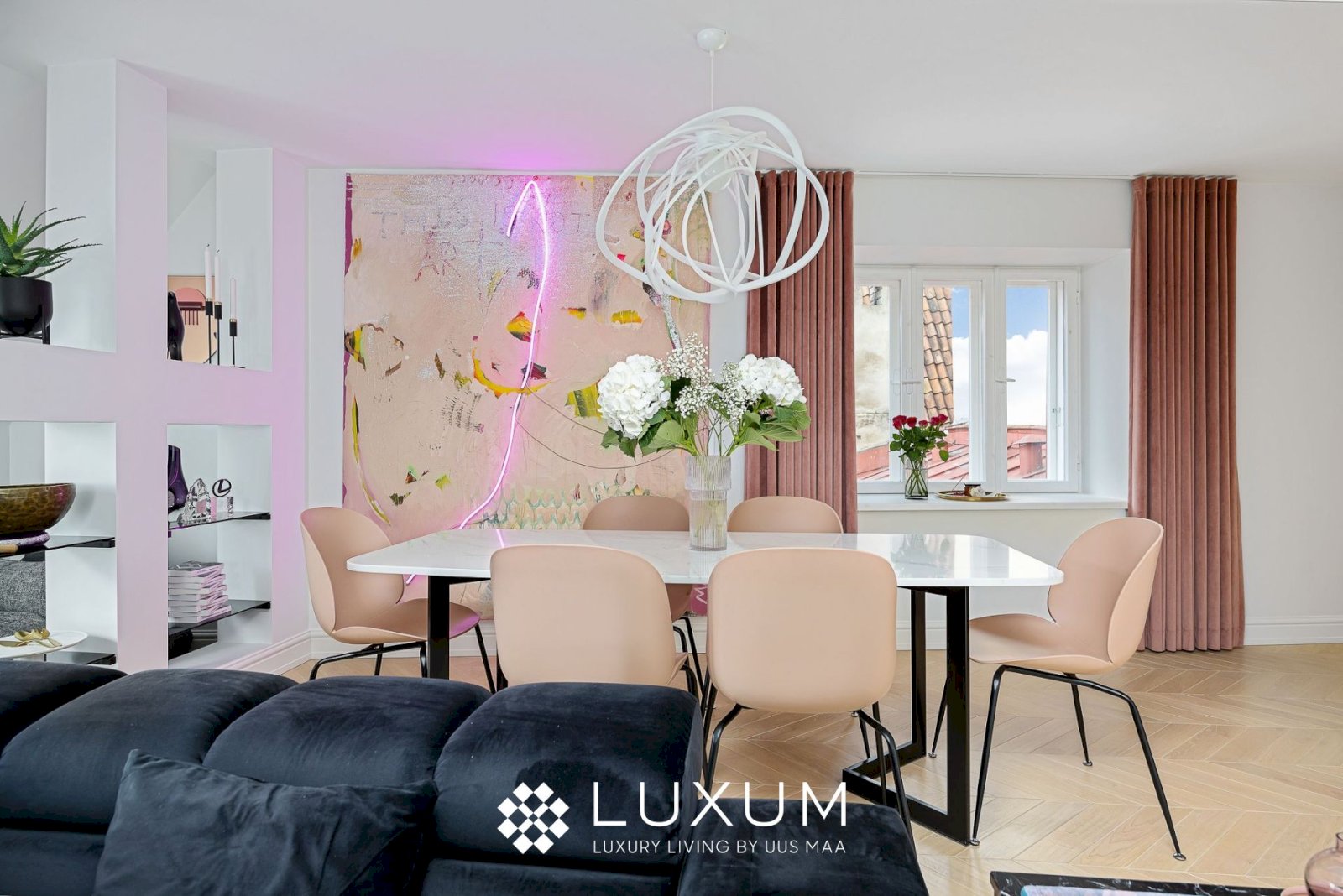 Hoolikalt valitud materjalid ja läbimõeldud valguslahendused toovad esile korteri unikaalsed arhitektuurilised detailid, muutes kodu hubaseks ja erakordselt stiilseks.