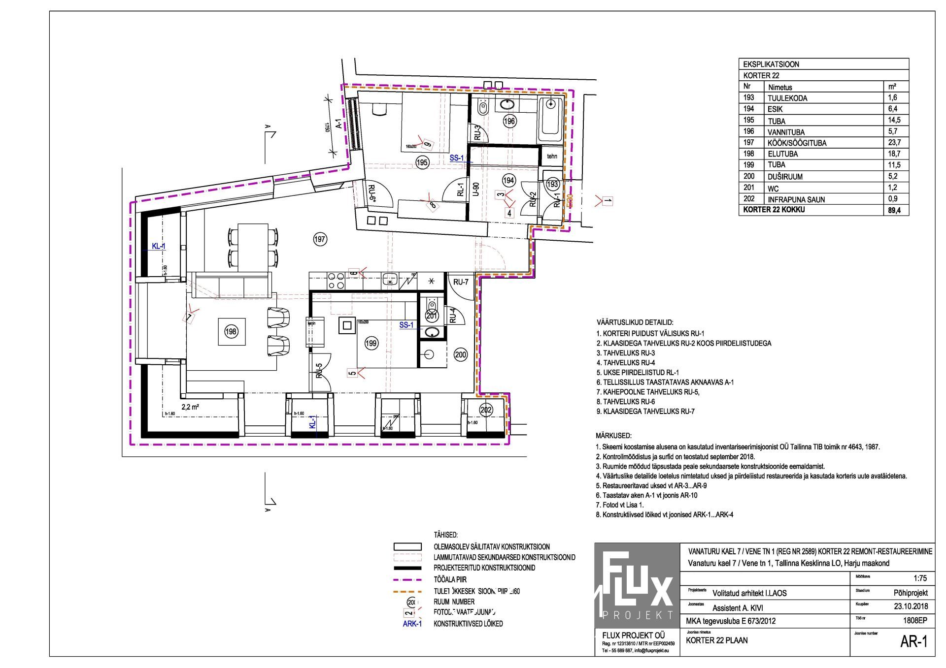 Korteri üldpind on 89,4 m²,