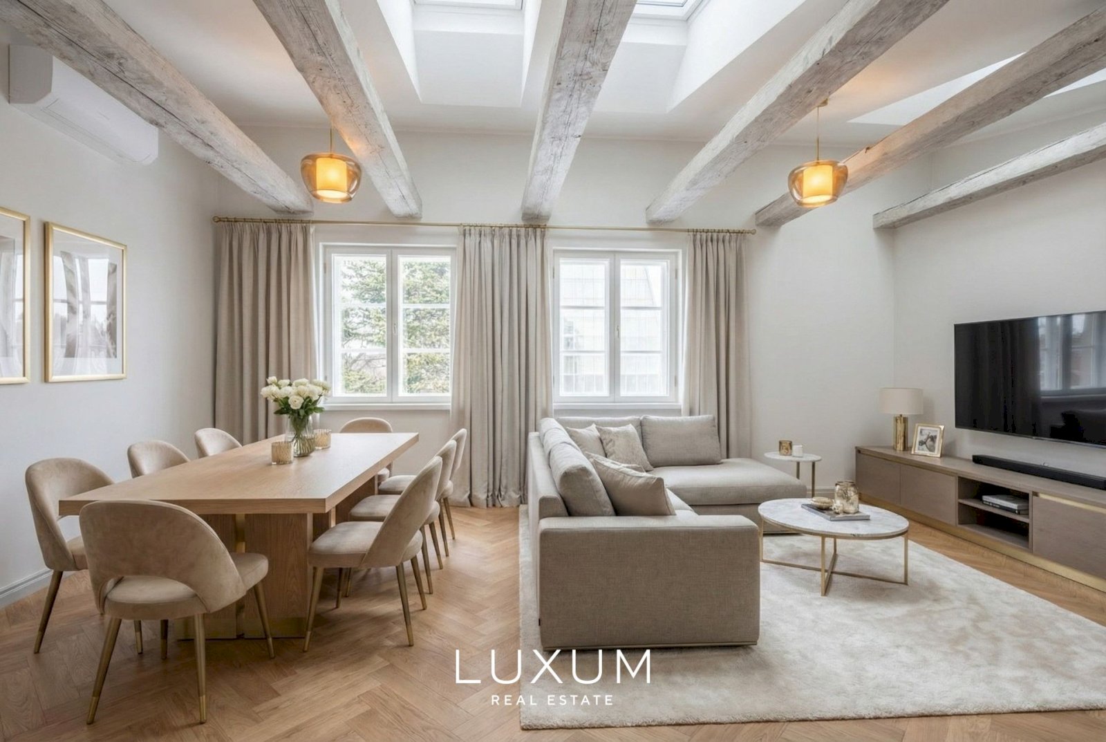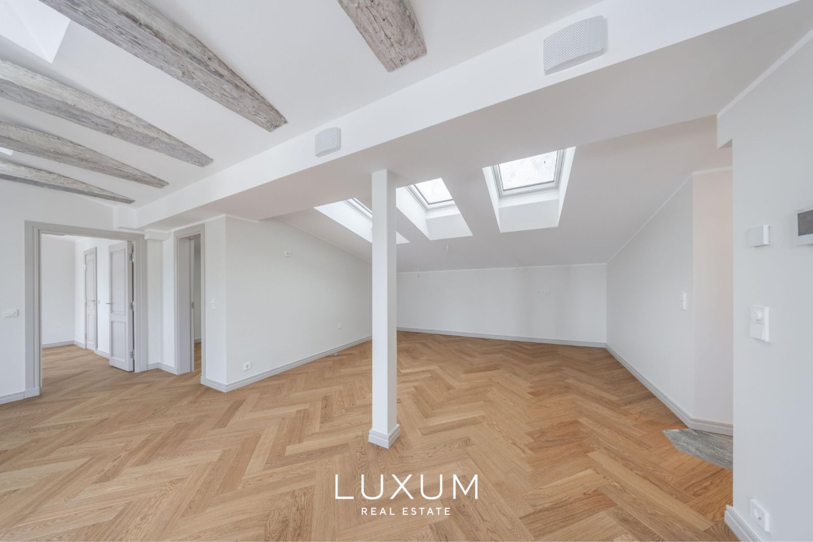 Korteri süda on üle 45 m² suurune elutuba koos köögialaga, kus katuseaknad ja aknad botaanikaaia suunas toovad ruumi pideva loomuliku valguse. Säilitatud ja maitsekalt presenteeritud heleda ja õhulise viimistlusega laetalad loovad ruumile iseloomu ja ajaloolise mõõtme, rõhutades katusekorteri ainulaadsust.